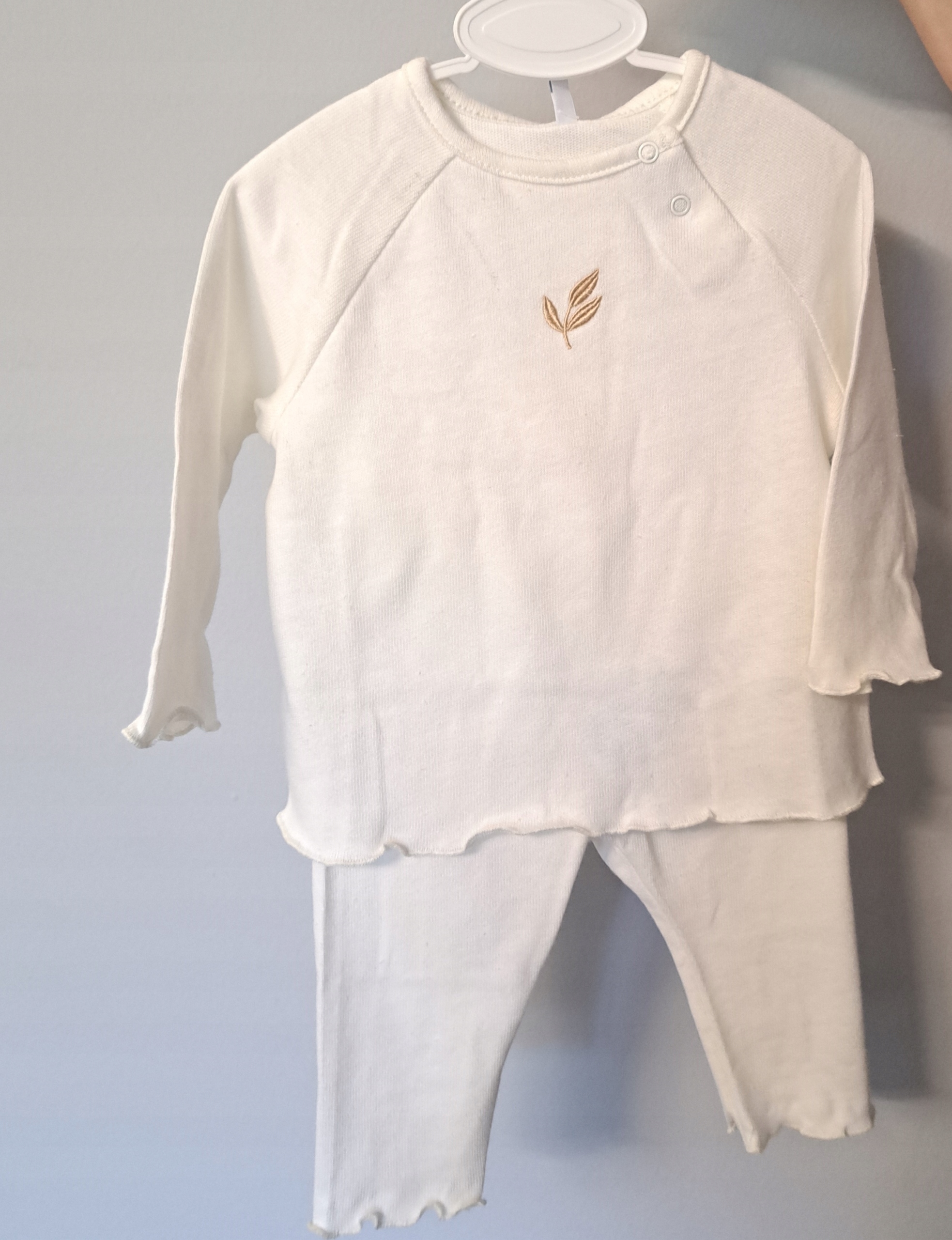 Komplet sweterkowy elegancki niemowlęcy do chrztu r.68 bluzka spodnie