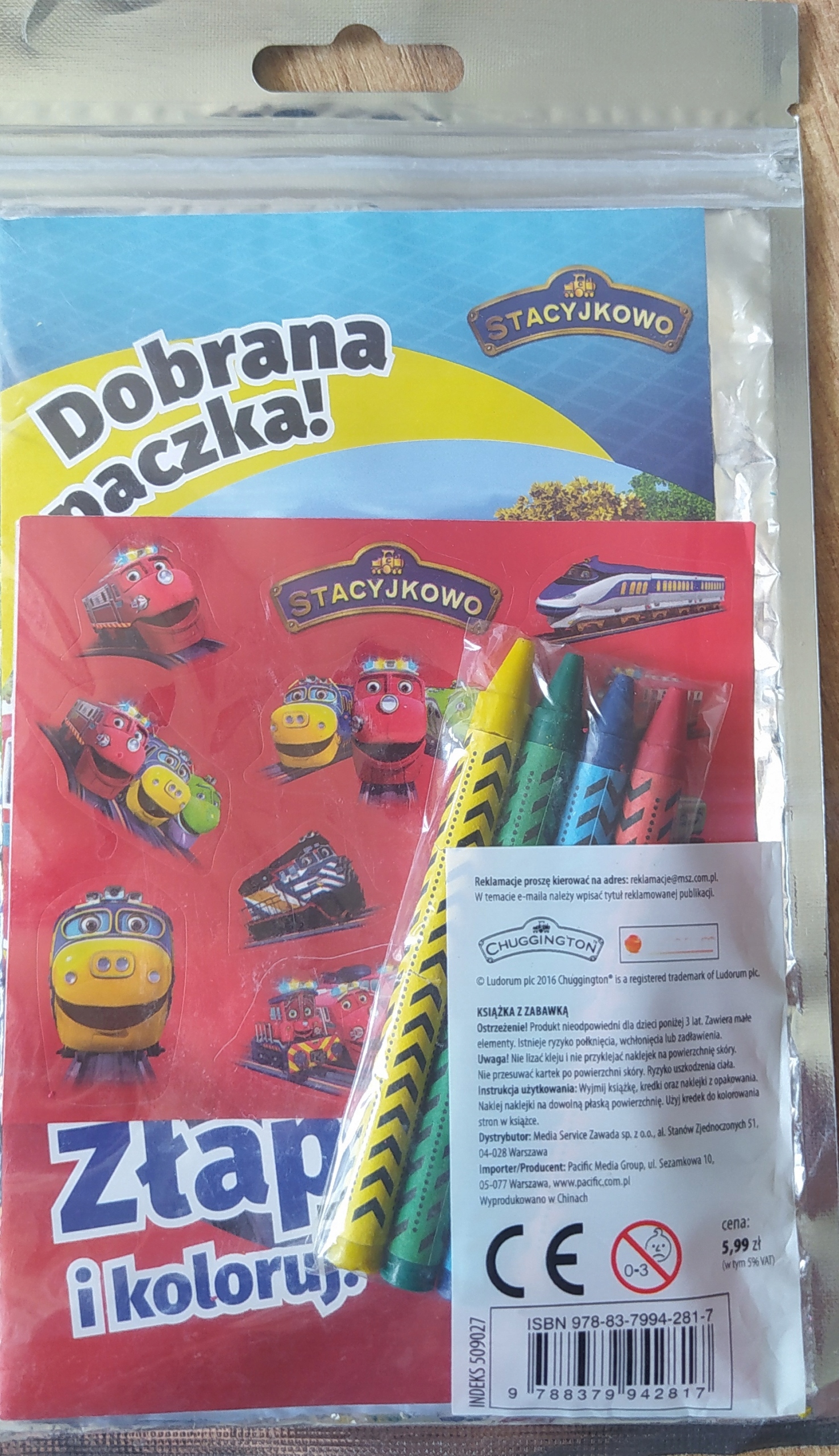 STACYJKOWO KOLOROWANKA DOBRANA PACZKA ZŁAP I KOLORUJ +KREDKI Praca zbiorowa