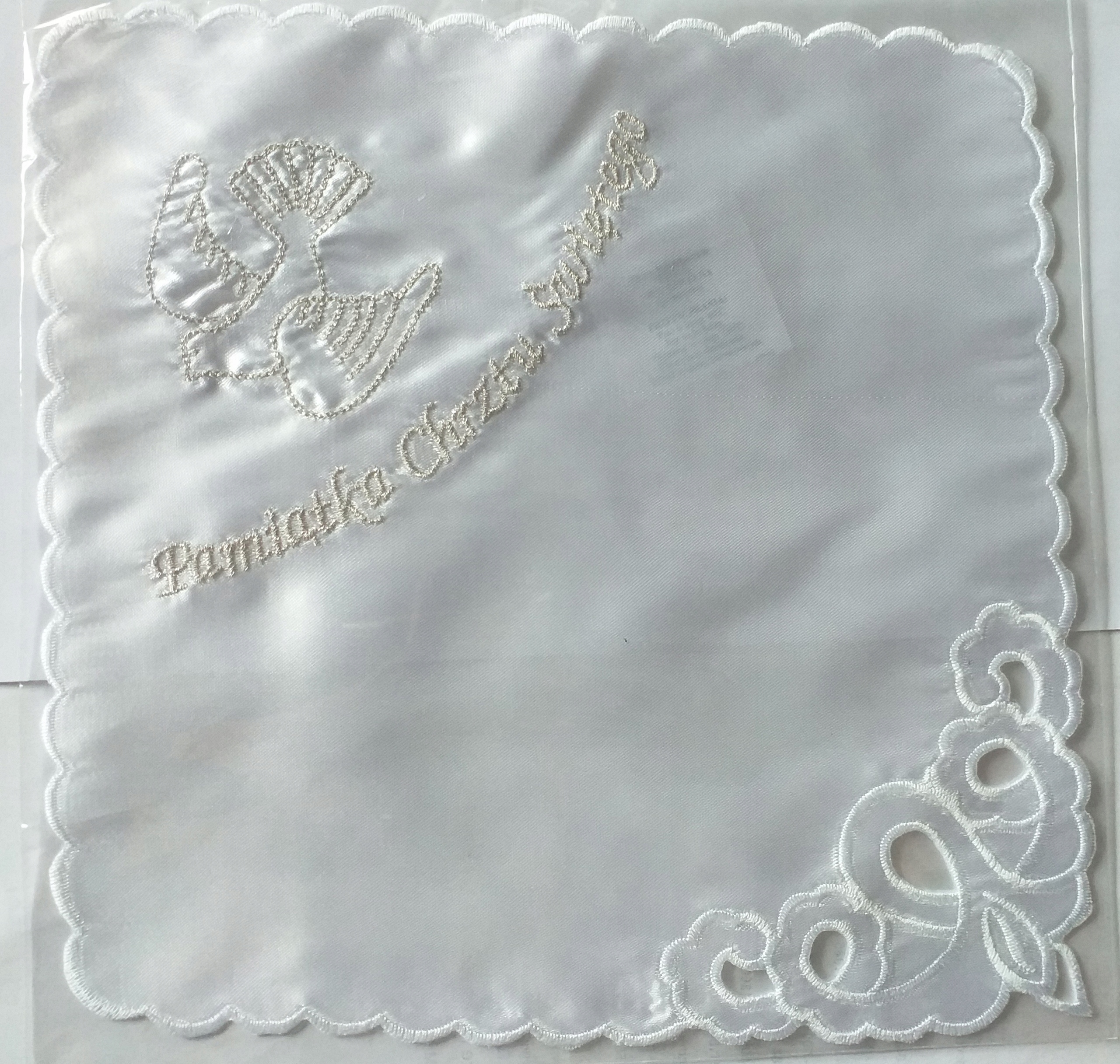 Szatka do chrztu Haft Pamiątka Chrztu Świętego Gołąb Srebrny